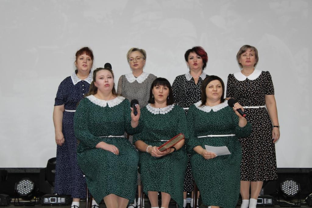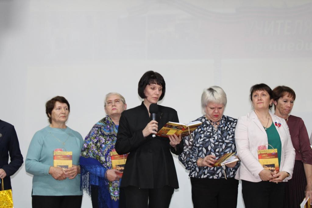 Яркие фрагменты биографических историй из книги со сцены читали директора: Старощербаковской школы Зоя Межуева, Новоспасской школы Елена Иванова. А учитель Таскаевской школы Татьяна Кривоносова говорила о бессмертном подвиге женщины на войне и посвятила стихотворение любимой учительнице.