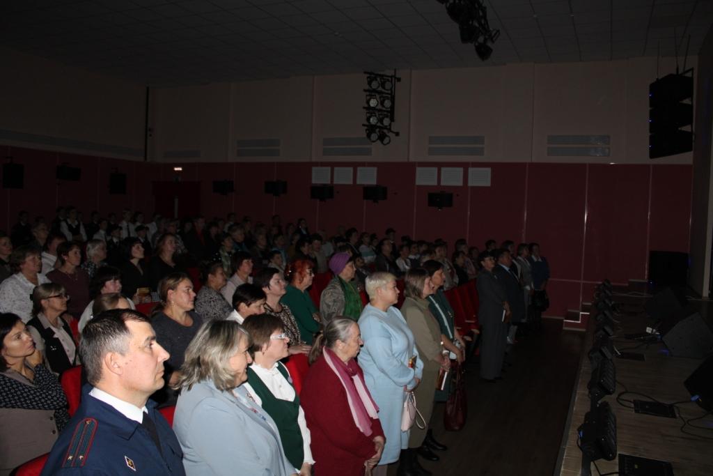 В зале собрались руководители образовательных учреждений, председатели первичных профсоюзных организаций, учителя, ветераны педагогического труда, учащиеся из патриотических клубов, дети, внуки, родственники героев книги. С приветственным словом к участникам обратился председатель Совета депутатов Барабинского района Евгений Бессонов.