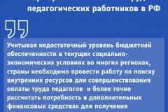 В свою очередь, Лариса Солодилова подчеркнула, что Профсоюз на всех уровня и в рамках своих компетенций готов проводить совместно работу с органами власти по поиску подходов к совершенствованию систем оплаты труда с соблюдением действующего законодательства, при выполнении главного принципа — неуменьшения заработной платы каждому работнику, а также по доведению и разъяснению главных задач и возможных условий внесения изменений в действующих системах оплаты труда до педагогических работников.