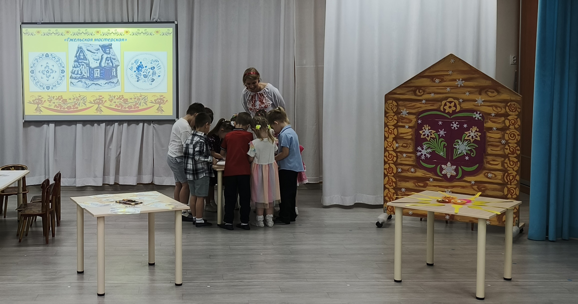 Воспитатель высшей квалификационной категории Татьяна Лазаренко провела открытое занятие на тему «Умная пчёлка в гостях у мастера Ерёмы: путешествие по лабиринту русских традиций» в группе «Зайка» с детьми 5-6 лет.