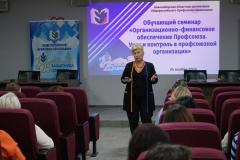 Главный бухгалтер областной организации Светлана Галянская в своем выступлении отразила такие ключевые тезисы финансовой работе в Профсоюзе, как структура профсоюзного бюджета (членские взносы, целевые поступления, резервы), порядок формирования и использования средств, требования к бухгалтерской отчётности (формы, сроки, аудит).